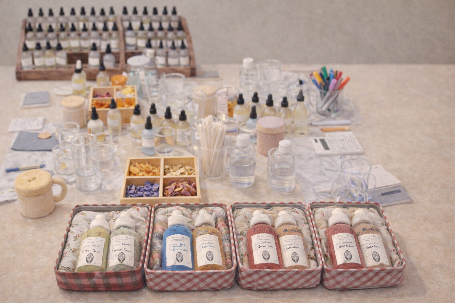 擴香+香水+室內噴霧+洗手液 全面課程:學員可製作一瓶251ml/8.5oz的大號擴香、一瓶50ml的中號香水,一瓶118ml的室內噴霧以及一罐251ml/8.5oz的洗手液。可選擇不同的香味。課程為2.5-3小時。